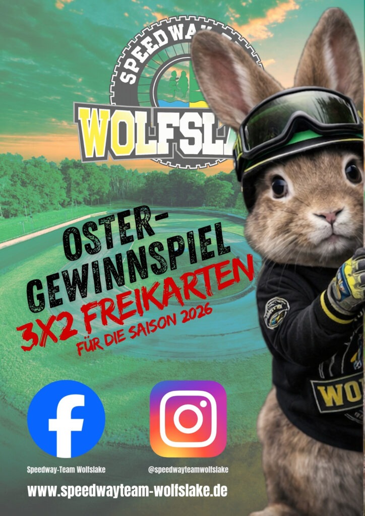 Auf unseren Facebook– und Instagram-Accounts startet heute unser großes Oster-Gewinnspiel. Mit etwas Glück gibt es 3×2 Freikarten für die Saison 2026 in Wolfslake zu gewinnen.