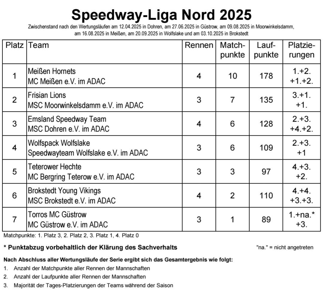 In der Gesamtwertung stehen wir aktuell auf dem 4. Platz. Doch noch ist nichts entschieden: Lauf 7 der Speedway Liga Nord steht noch aus – der genaue Termin folgt. Wir bleiben motiviert und hoffen, die Saison mit einem weiteren starken Ergebnis abzuschließen.
